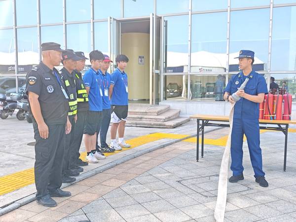 活动中,大队监督员向赛场工作人员针对场馆重要部位普及了火灾预防、初期火灾扑救、疏散逃生技能及消防设施使用等关键知识,并一一列举赛事场馆应当履行的消防安全职责,最后阐述日常消防安全管理如何落实到位,以及火灾发生时如何应对处置和逃生自救。随后,在实操环节,消防员现场讲解和示范灭火器和室内消火栓的正确使用方法,并指导工作人员分组操作干粉灭火器,学习“提、拔、握、压”标准化流程,以及完成消火栓出水任务,有效提升了消防安全意识和突发事件处置能力。