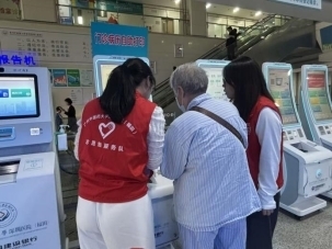一位独自前来就诊的老人因不熟悉智能设备而焦急不已,志愿者见状主动上前,全程协助老人挂号,为他指引科室,并陪同检查,耐心安抚他的情绪,直到老人顺利完成就诊。用一次次主动上前、一句句暖心问候,温暖了患者的心坎。