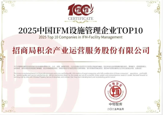 作为全国设施管理标准化技术委员会副秘书长单位,以及国内首批通过ISO 41001设施管理体系认证的企业,招商设施近年来连续荣膺克而瑞(CRIC)“中国FM设施管理领先企业”、中物智库“中国IFM设施管理企业TOP10”等行业权威奖项,多次斩获IFMA国际设施管理相关荣誉,在IFM垂直领域已形成显著的头部效应。